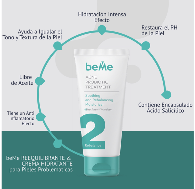 • Passo 2: Creme Hidratante beMe - Hidrata profundamente sem deixar a pele oleosa. Os probióticos fortalecem a barreira da pele e o microbioma.